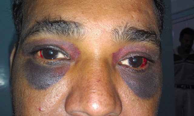 bruising around both eyes)