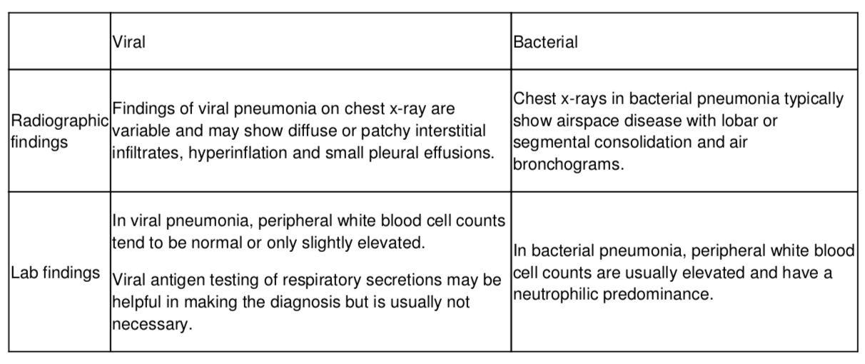 What is the treatment for viral pneumonia? bacterial pneumonia?