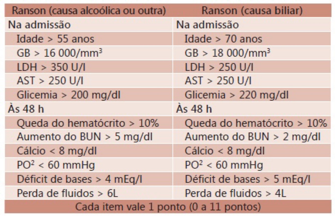 Critérios de Ranson para pancreatite aguda