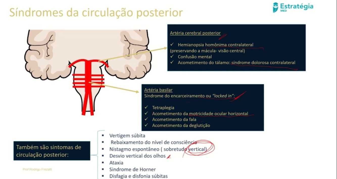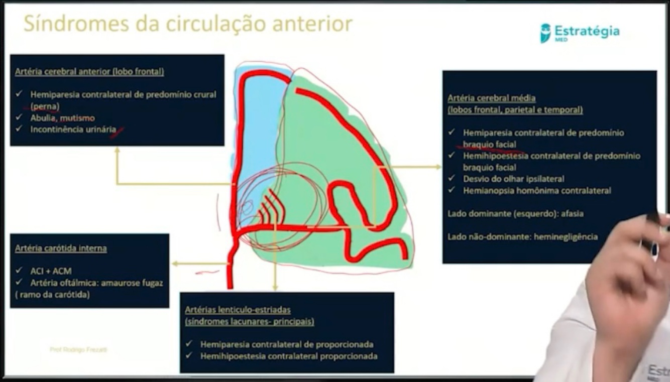 AVCs e suas manifestações, dependendo da região afetada: