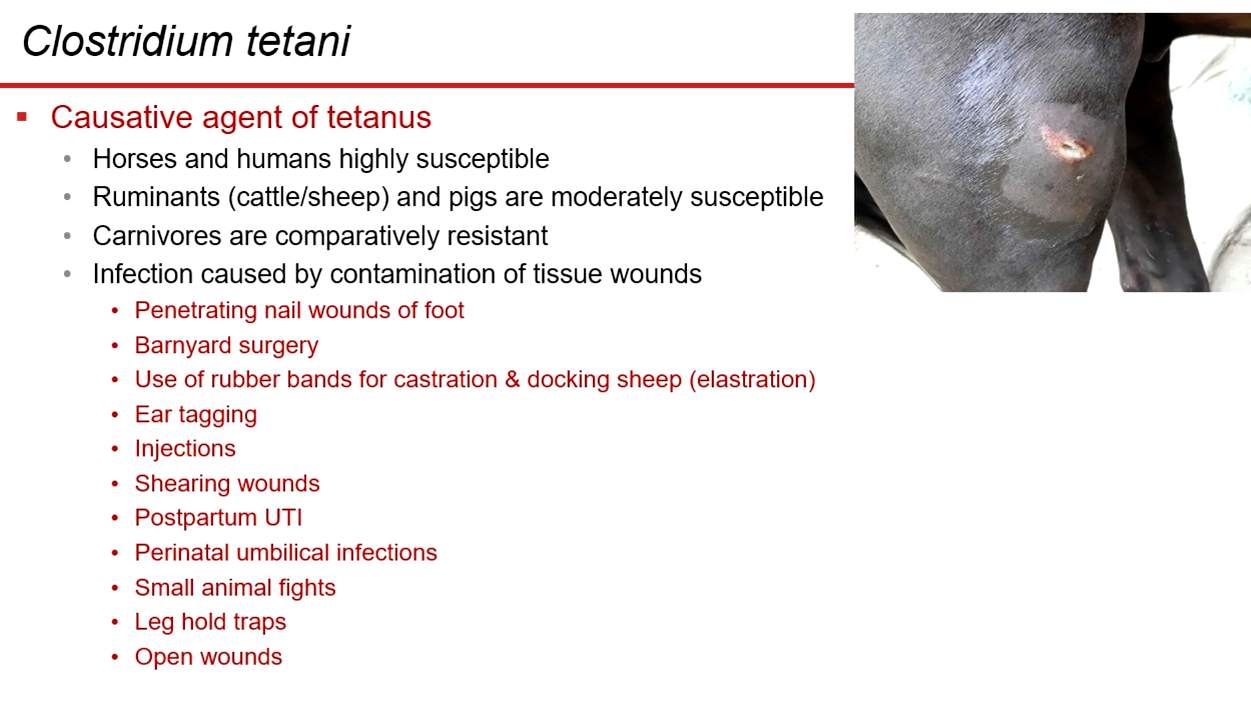 what are the the conditions for clostridium tetani to infect susceptible host
