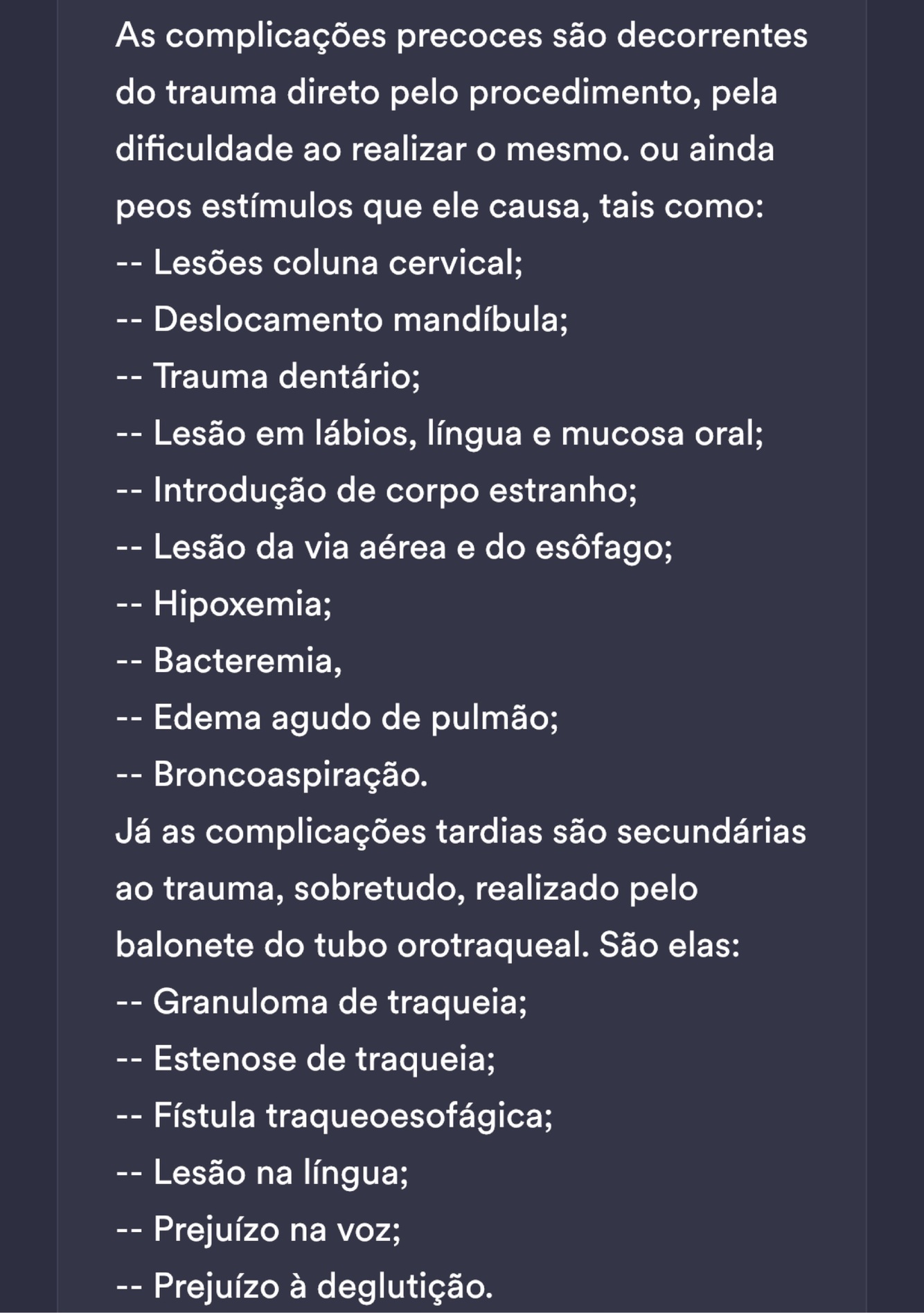 Intubação orotraqueal complicaçoes