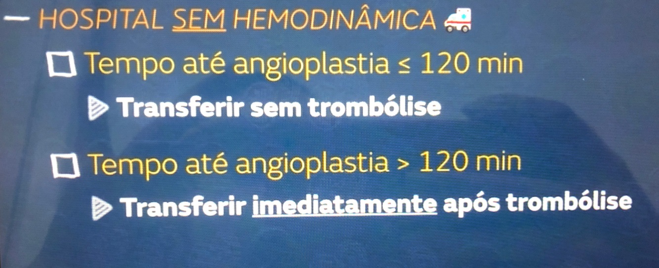 - conduta se o hospital não tiver hemodinâmica