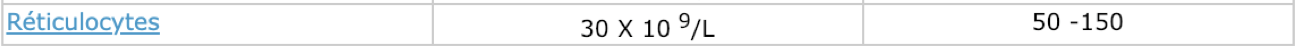 Quel est le terme qui définie des valeurs de réticulocytes abaissées