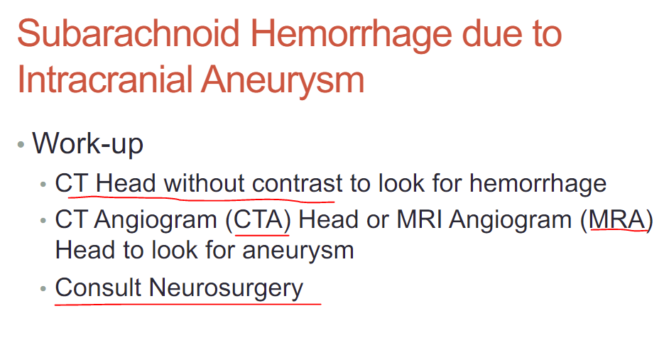 What should be done in the event of a suspected subarachnoid hemorrhage?