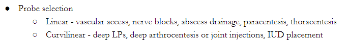 What type of ulstrasound probe would be best used for the following: