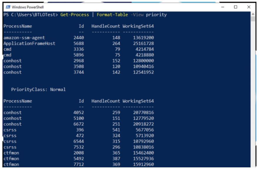Description: Another great command is the ability to group running processes by their priority value. Using the above command we can see the process name, the process ID (PID), and other information, where different priority ratings are grouped into tables.