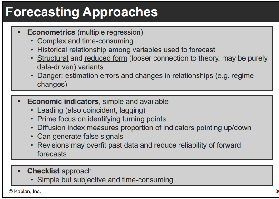 Forecasting Approaches: Econometric vs. Economic Indicators Vs Checklist Approaches