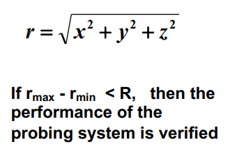 * For each measurement point, the radial distance “r” from the sphere centre to the probed point is calculated.