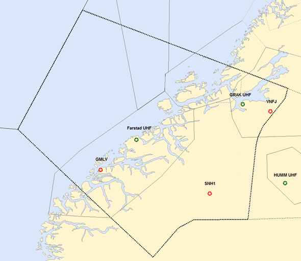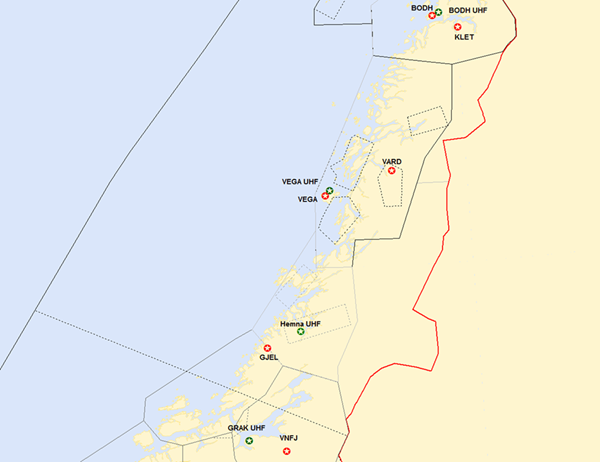 Bodø (BODH) Klettkoven (KLET) Vardefjell (VARD) Vega (VEGA) Gjeltheia (GJEL) Vennafjell (VNFJ)