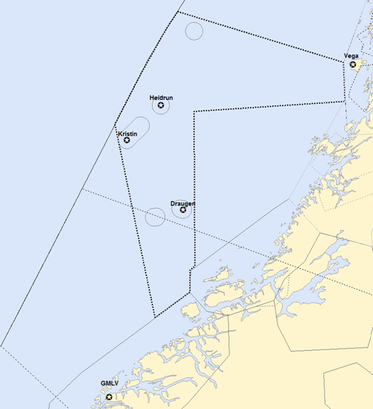 Vega (VEGA) Heidrun (HEID) Draugen (DRAU) Kristin (KRIS) Gamlemsveten (GMLV)