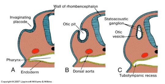 What structure is the primitive tympanic cavity and auditory tube derived from?