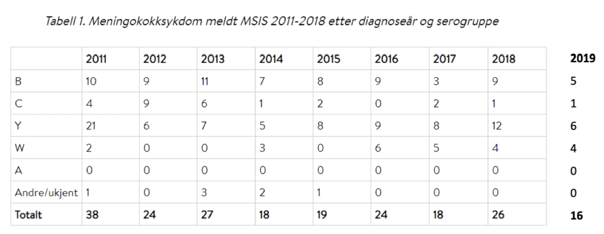 Hvordan har forekomsten av menigokokksykdom vært i Norge ifølge MSIS (2011-2018)?