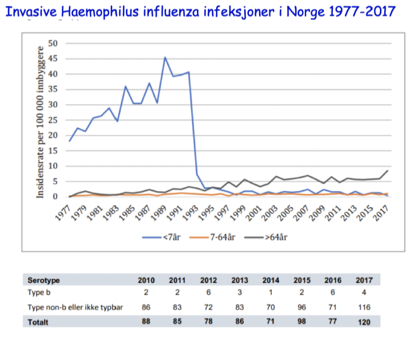 Hvordan har utviklingen av invasive haemophilus influenzae vært i Norge (1977-2017)?