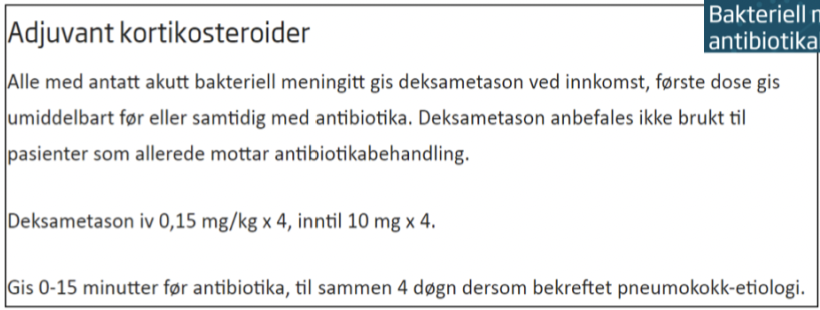 Hvilken type adjuvansbehandling er aktuell ved meningitt?
