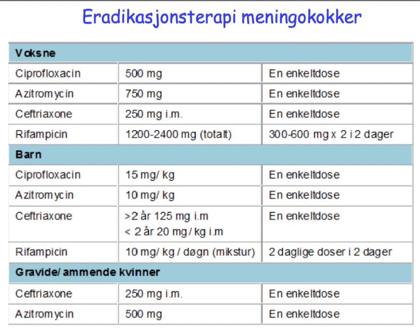 Eridikasjon av meningokokker i nasopharynx er en mulighet