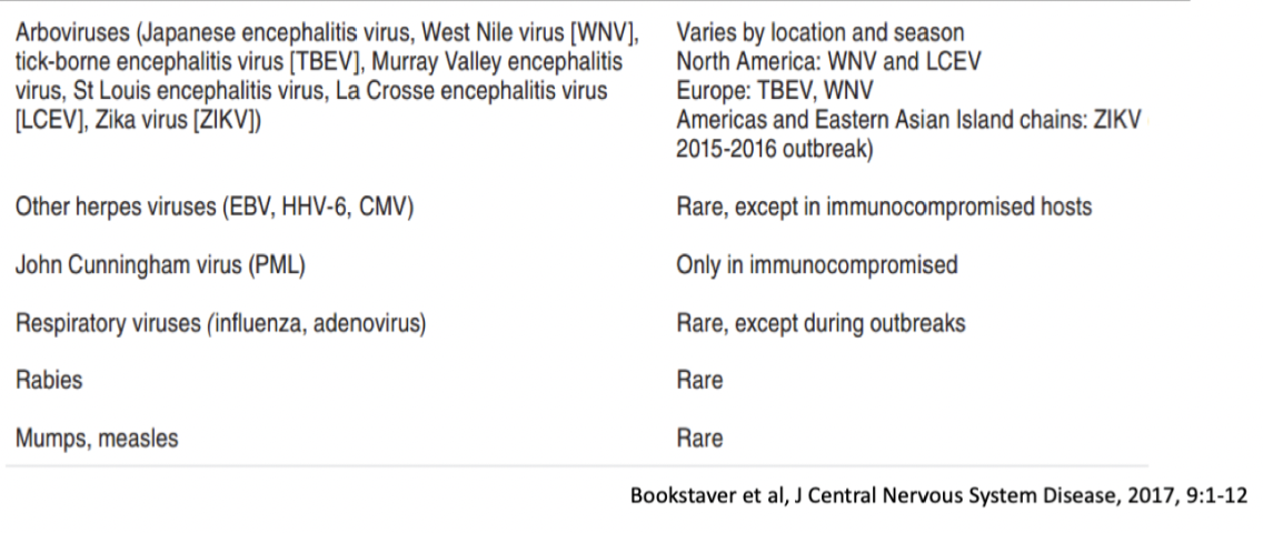 Hvilke virale årsaker er vanlig ved encephalitt?