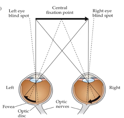 We do not see any functional deficits when both eyes are used, when one eye is used, the visual system fills in the blind spot