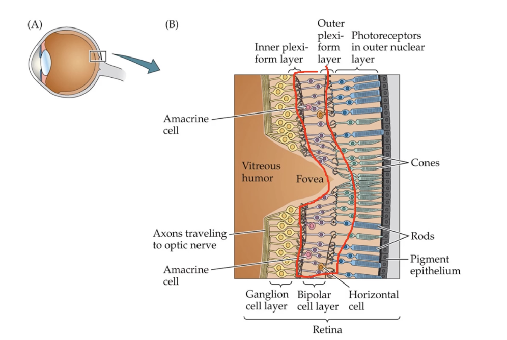 This layer receive input from the photorecptors; then send the input to the ganglion cell layer