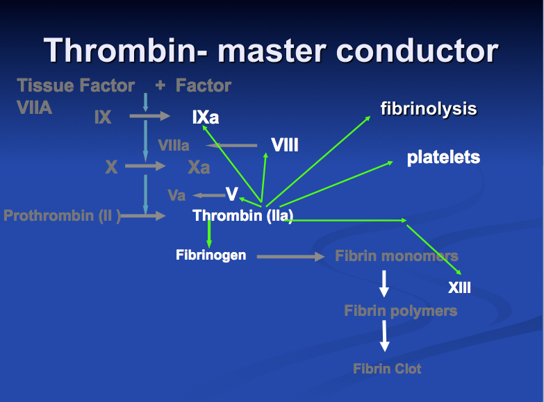 In the coagulation cascade, factor XIIIa functions to stabilize the fibrin clot by crosslinking the Lysine and glutamine side chains of α- and γ-chains of fibrin to form homopolymers