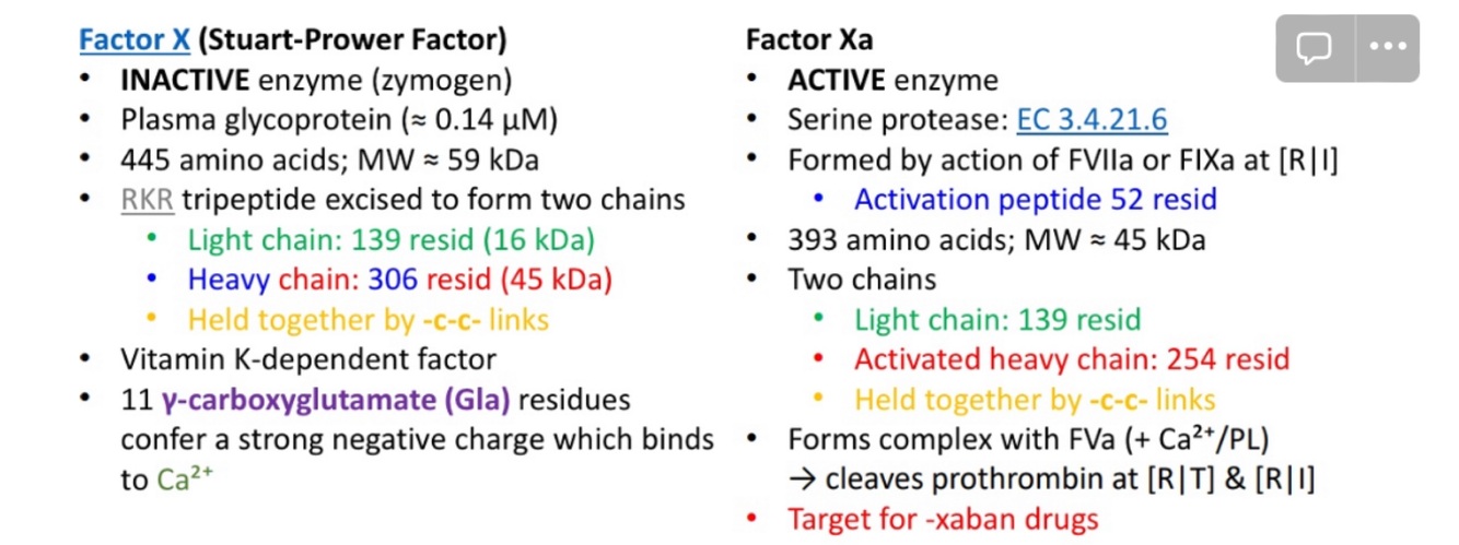 • FXIIa → FXIa → FIXa → FXa → FIIa (thrombin) → FIa (fibrin)