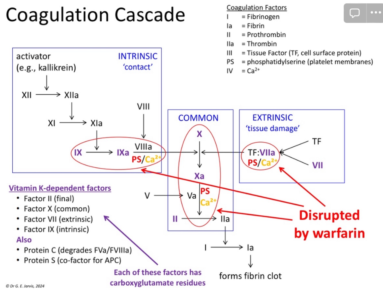 • FVIIa → FXa → FIIa (thrombin) → FIa (fibrin)