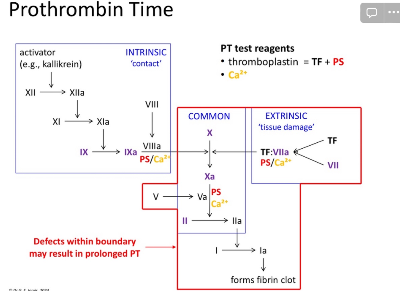 • Defects in FVII, FX, FV, FII, FI could all prolong PT