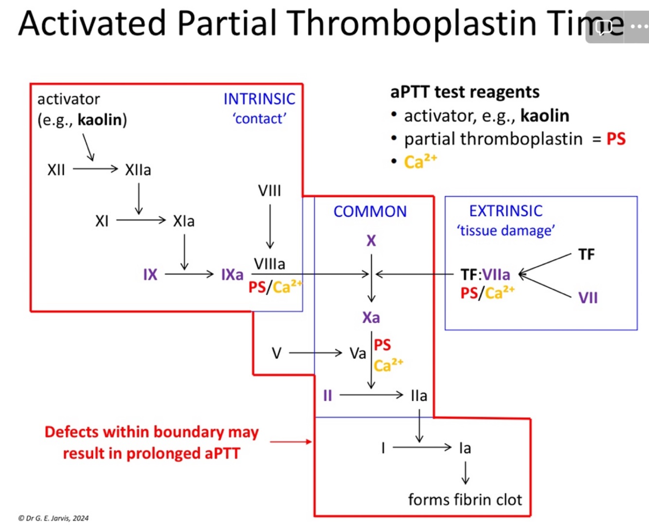 • Defects in FXII, FXI, FIX, FVIII, FX, FV, FII, FI could all prolong aPTT