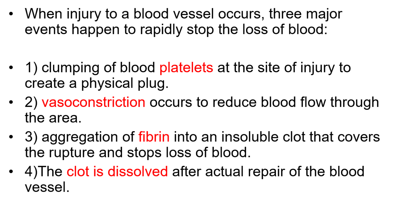 What are the events that occur when a blood vessel is damaged?