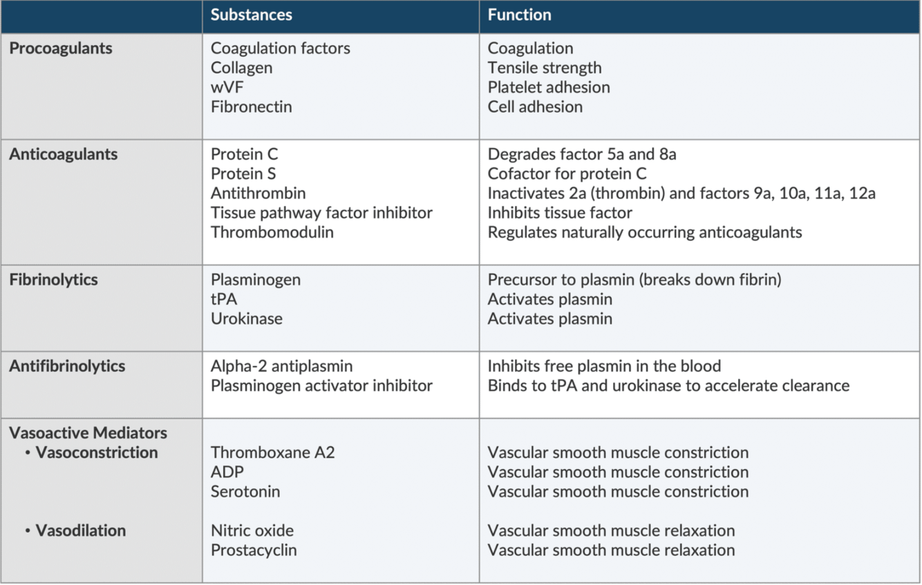 Which substance is responsible for adhering the platelet to the damaged vessel?