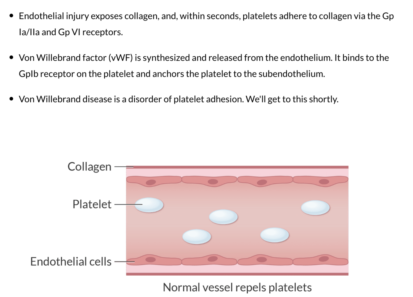 What platelet outer structure (receptor) directly adheres to injured endothelium?