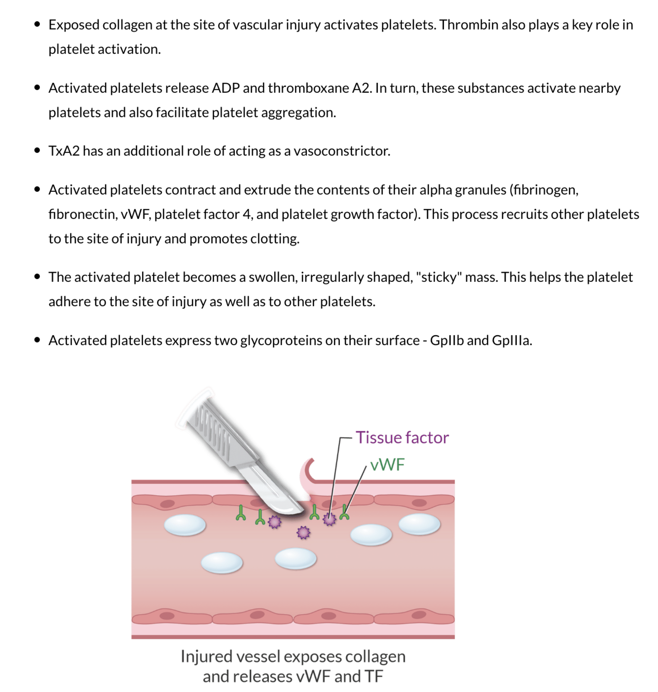 Platelet adhesion to the damaged endothelium should be associated with ________________.