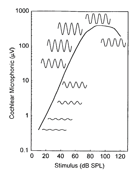 Non-linear means that while the intensity level (the stimulus dB) is increased, the CM amplitude also increases BUT it does reach a point where it will not increase and eventually at higher intensity levels will “roll-over” which means the amplitude of the CM will decrease at those levels