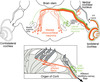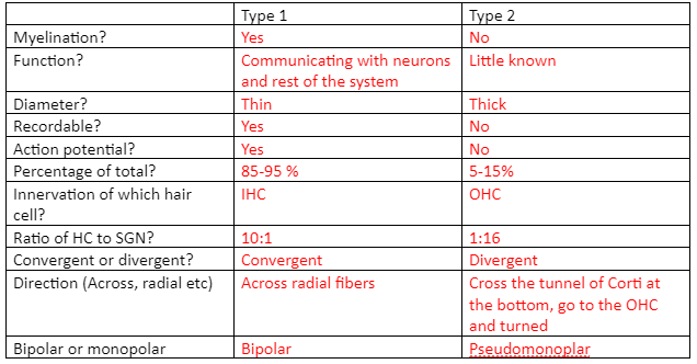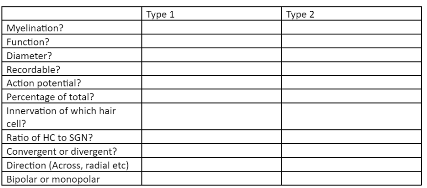 The efferent is from the brain to the hair cells; Afferent is from the hair cells up to the brain