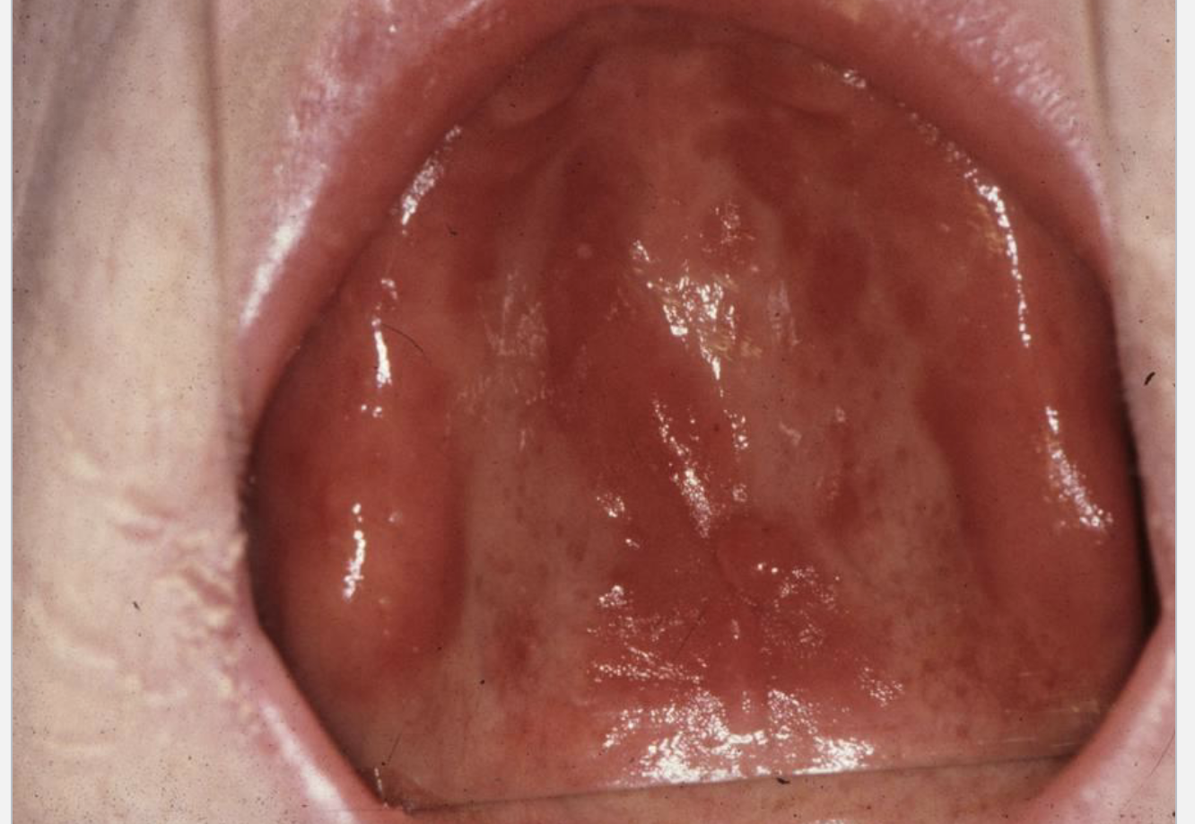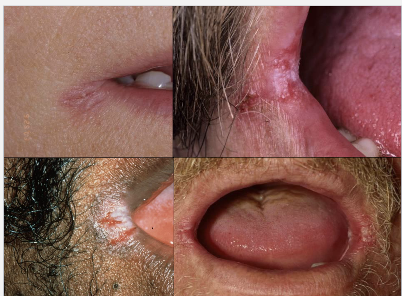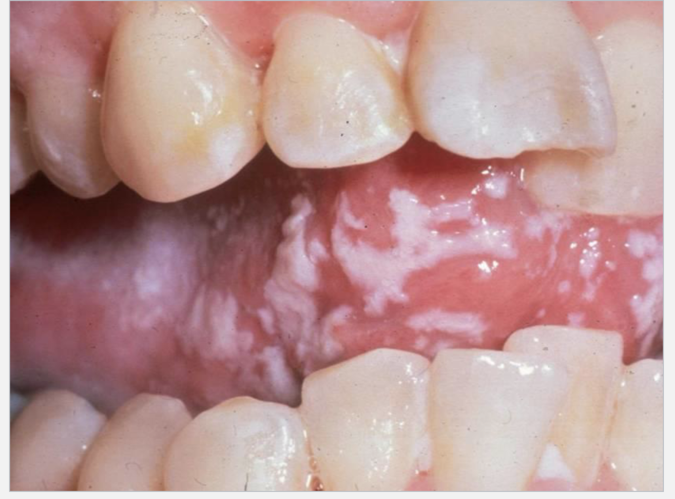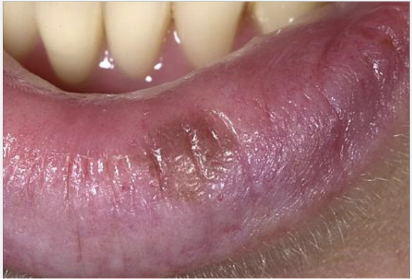 • Cause unknown – Hypersensitivity to environmental factor ? • Common at tip and lateral border • Red – Multiple erythematous zones – Atrophy of filliform papillae • White • Elevated, yellow-white, serpiginous border