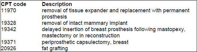 13102Replacement of tissue expander with permanent prosthesis, Fat grafting, Complex repair