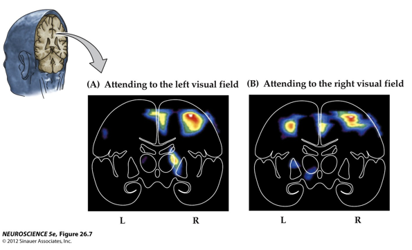 As might be expected from the clinical evidence in humans, neurons in specific regions of the parietal cortex of the rhesus monkey are activated when the animal attends to a target, but not when the same stimulus is ignored