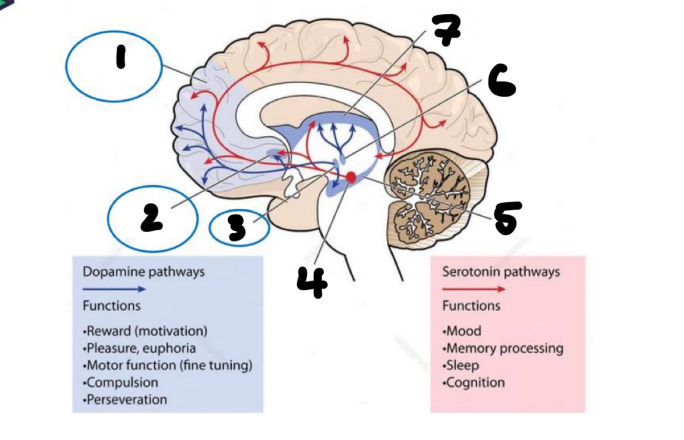 -cortical areas - prefrontal cortex, orbitofrontal cortex, anterior cingulate cortex, entorhinal cortex