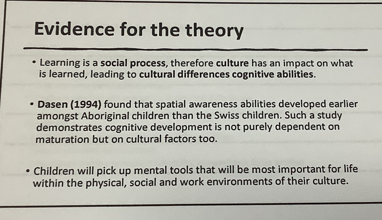 – However, the theory focuses heavily on the child being an independent learner and fails to recognise the role of learning as a social process