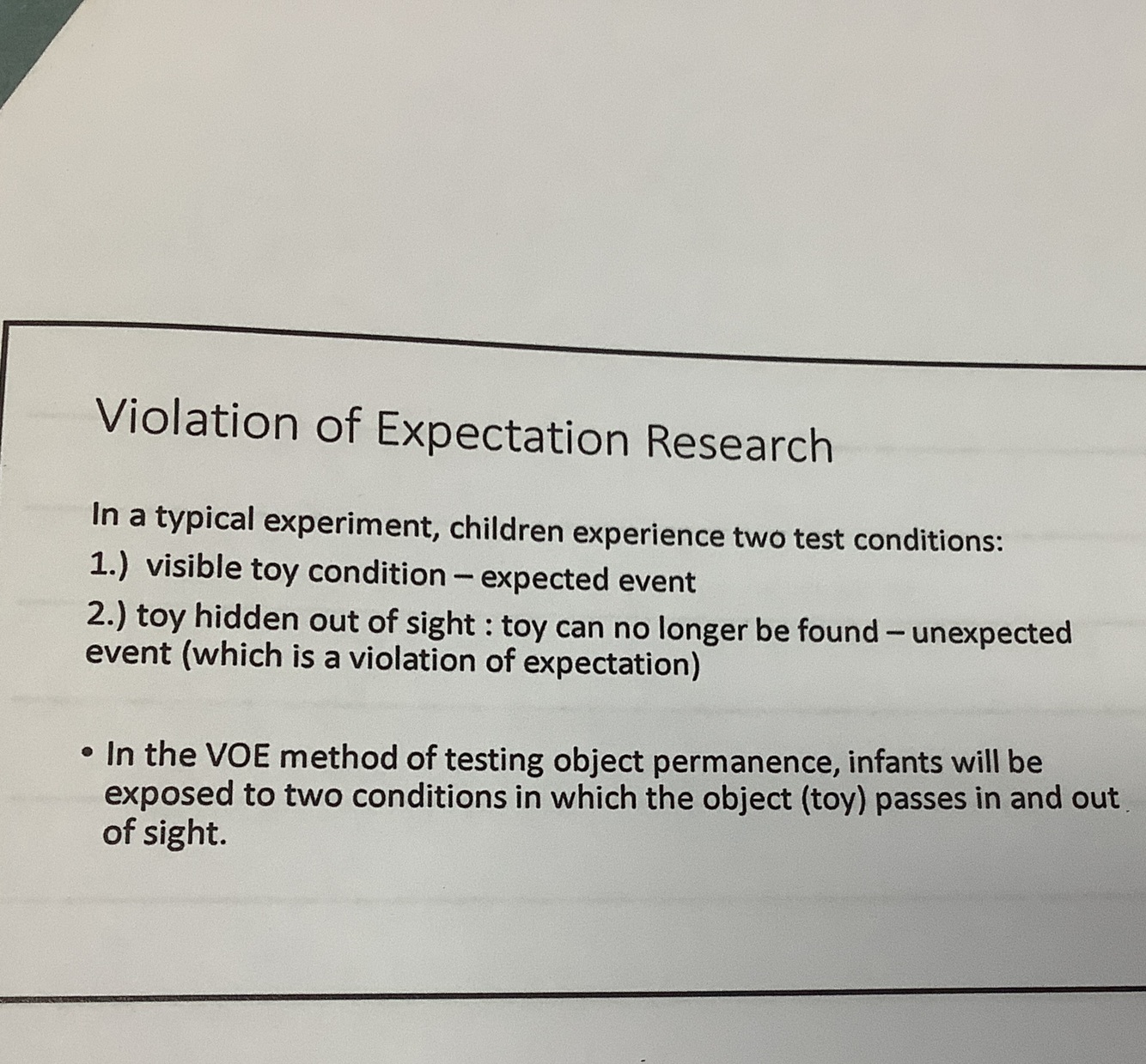What is violation of expectation research