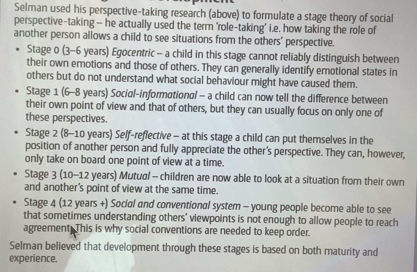 Evaluation of Selman’s research into perspective taking