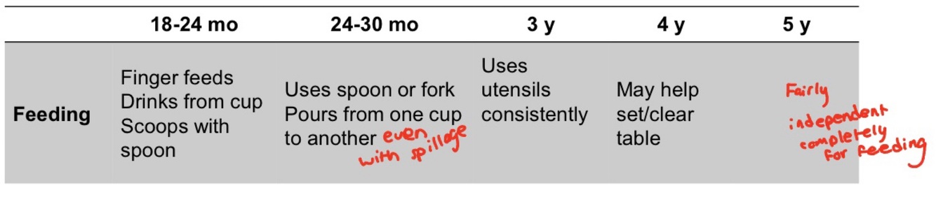 ADLs for children: FEEDING (among diff age groups)