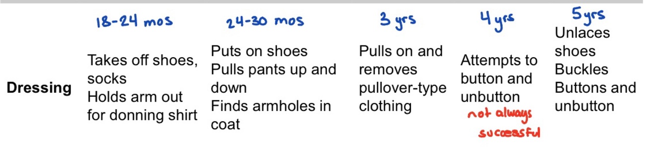 ADLs for children: DRESSING (among diff age groups)