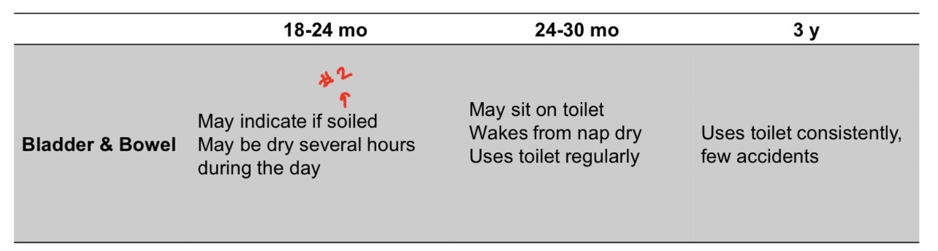 ADLs for children: BLADDER & BOWEL (among diff age groups)