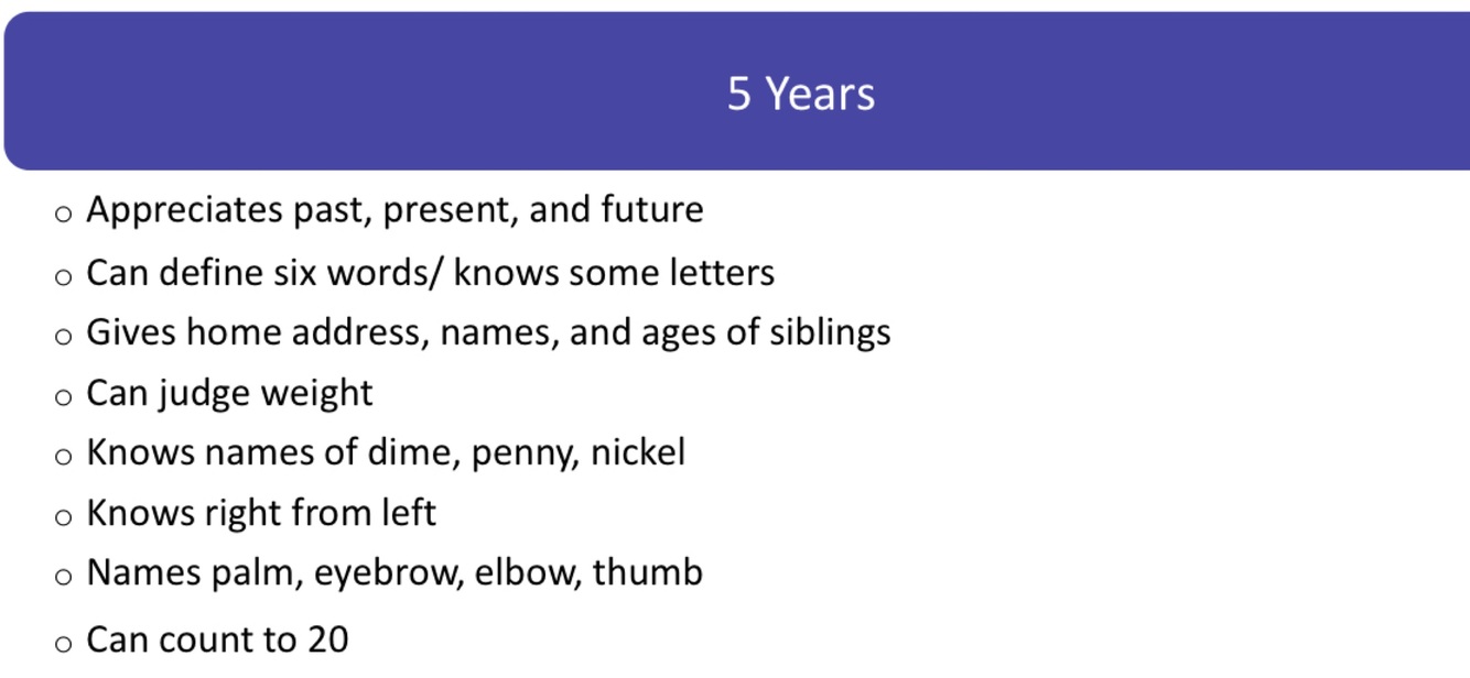 Cognitive development: 5 years