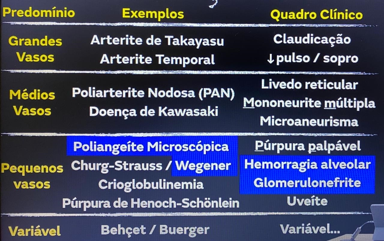 Síndrome pulmão-rim (hemoptise + glomerulonefrite)