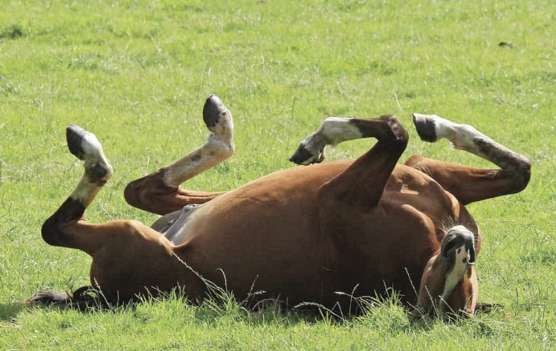 What does it mean when a horse rolls onto its back?