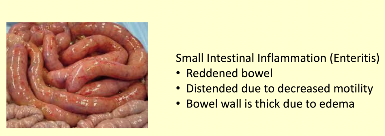 -> epithelial sloughing, loss of gut barrier and eventual necrosis of affected tissue