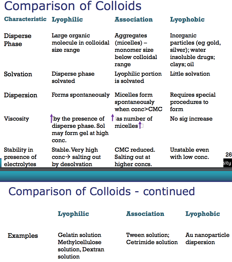 Compare the three types of colloids through;