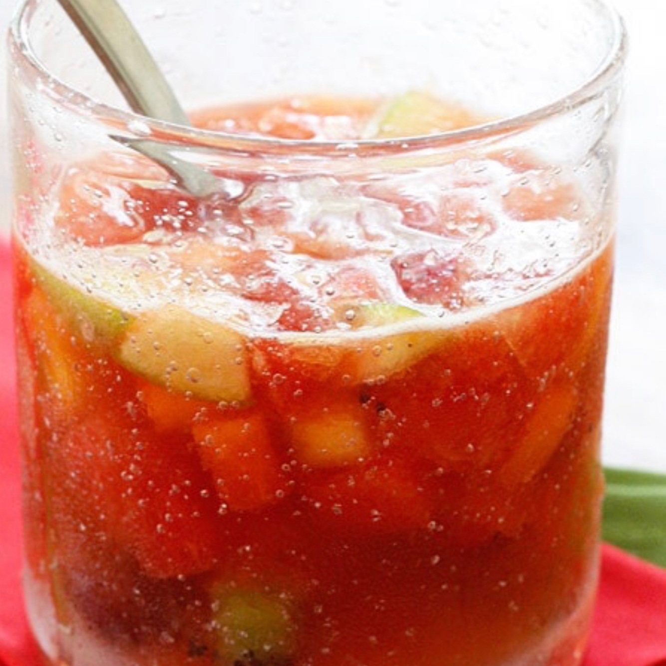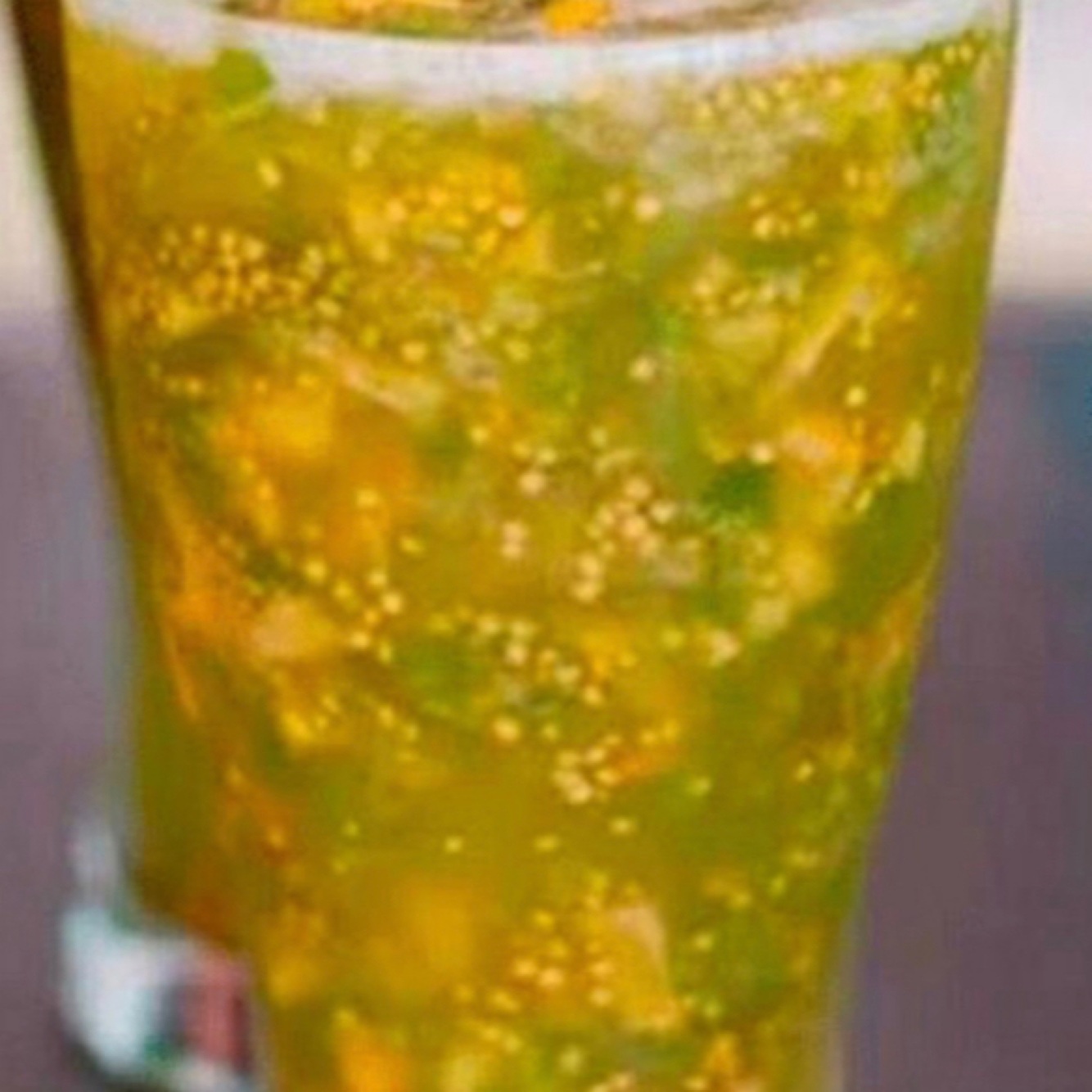 Drink made out of juice of varying flavour with diced fruit.